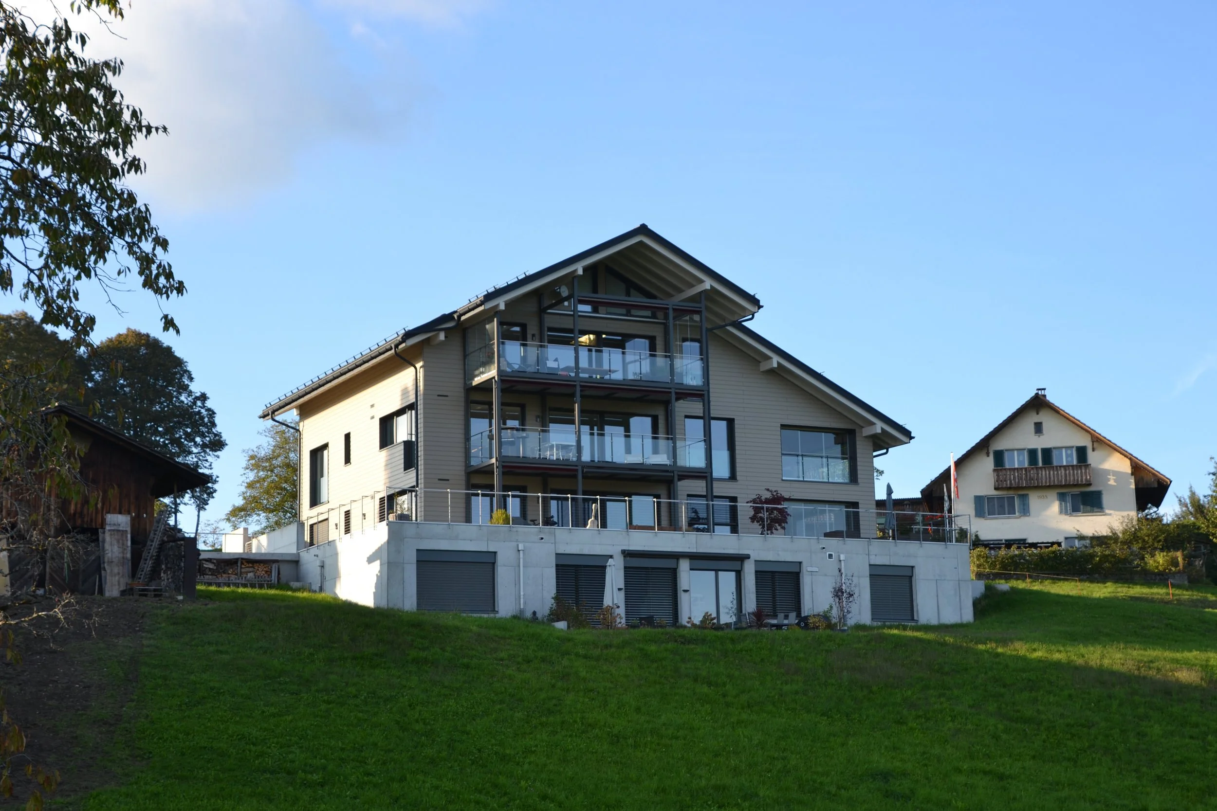 Das Haus bietet komfortables, modernes Wohnen in ruhiger Umgebung. Jede Wohnung verfügt über grosszügige Aussenflächen, gute Belichtung und funktionale Grundrisse mit flexibler Nutzbarkeit. Der Neubau vereint Effizienz, Einfachheit und Sorgfalt in der Umsetzung – ein unaufgeregtes, aber eigenständiges Mehrfamilienhaus, das sich selbstverständlich in den Kontext einfügt und auf Dauer angelegt ist.